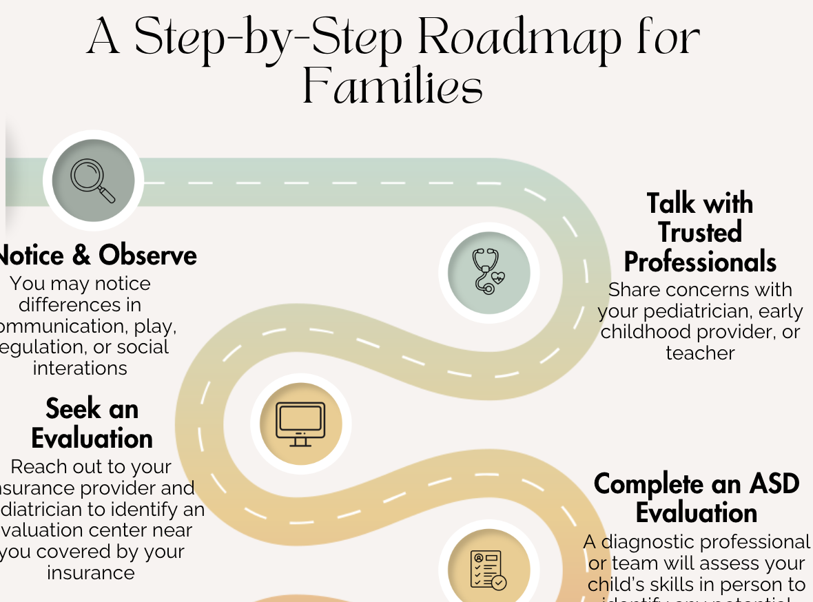 Noticing differences in your child’s development can bring questions and uncertainty. This visual roadmap walks families through simple, practical steps to take if you suspect your child may be autistic.